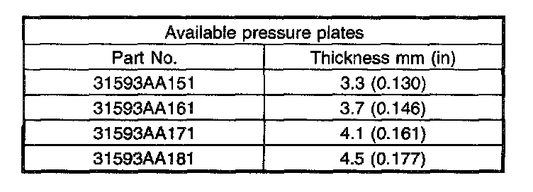 ^ Before measuring clearance, place the same thickness of shim on both sides to prevent pressure plate from tilting.