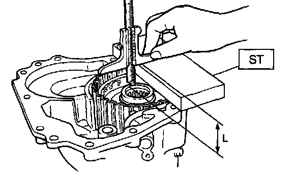 1) Measure distance L from end of extension case and rear drive shaft with ST.