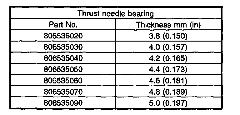 H: Thrust needle bearing thickness 0.05 - 0.25 mm (0.0020 - 0.0098 inch)