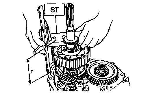 2) Measure the distance "l" from the transmission case mating surface to the reduction drive gear end surface with ST.