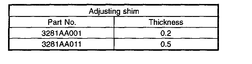 NOTE: Add 0.05 mm (0.0020 inch) and 0.25 mm (0.0098 inch) thick shims to area "T". Calculate formula 2 to determine "H". The calculated "H" refers to the shim thickness range. Select shims of suitable thicknesses within the calculated "H" range.