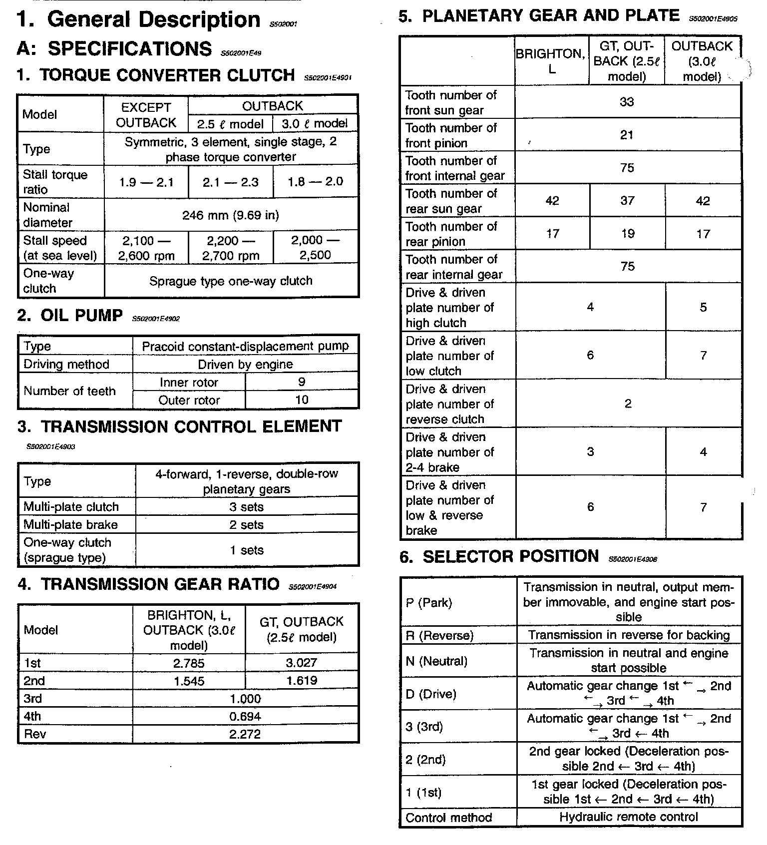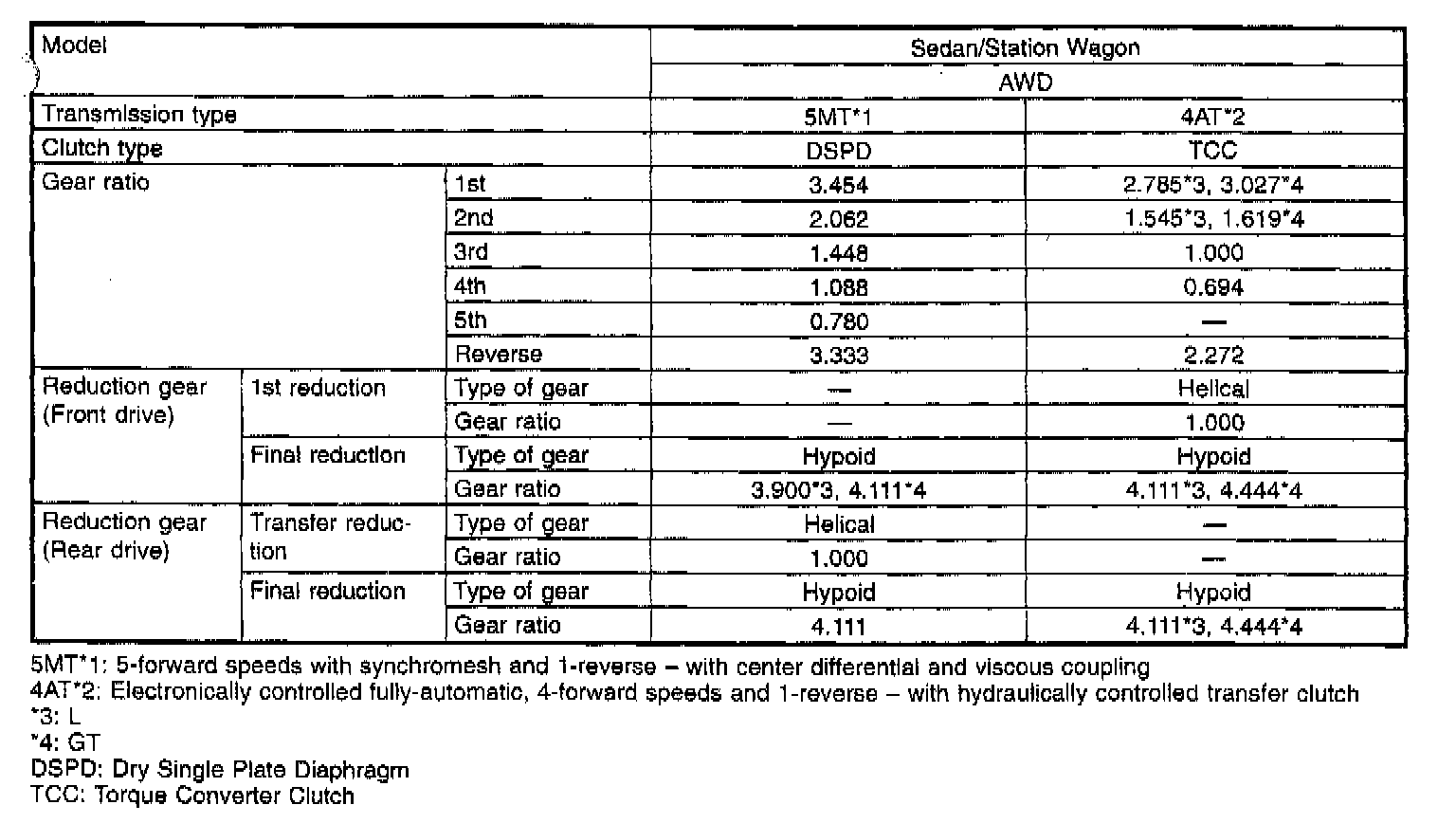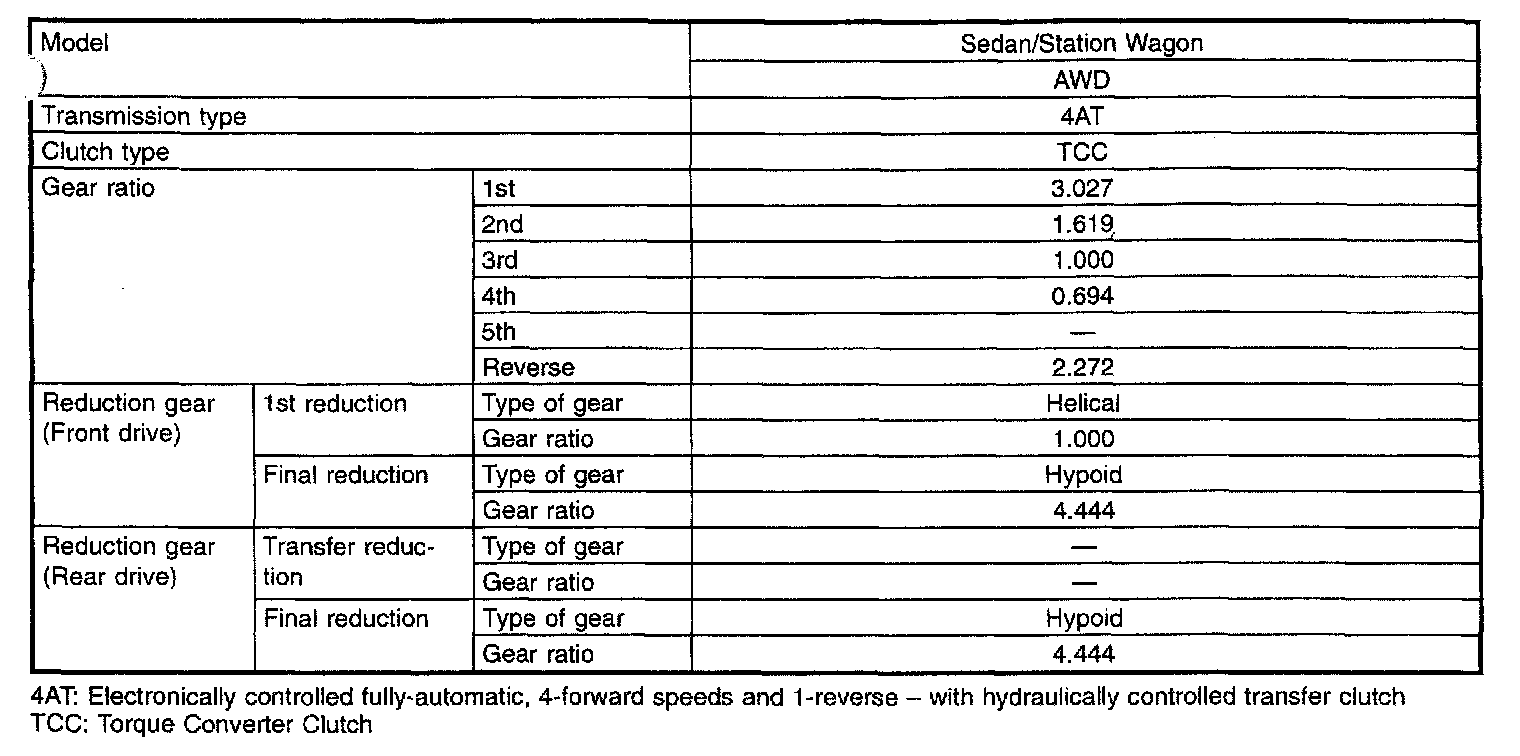 4-spd A/T, Transmission/Reduction Gear Ratios (Outback):