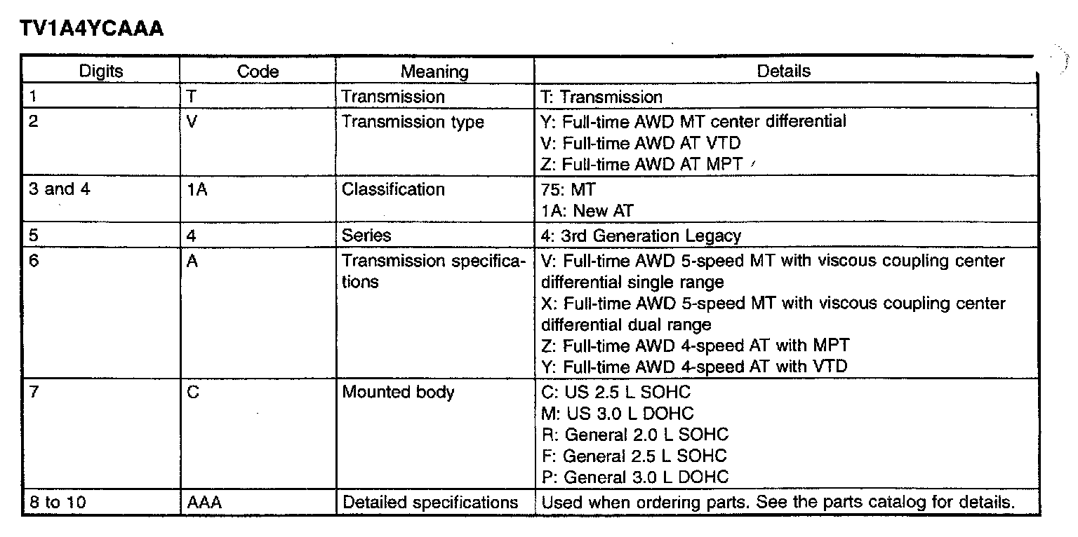 5-spd M/T/4-spd A/T, Transmission Identification Details: