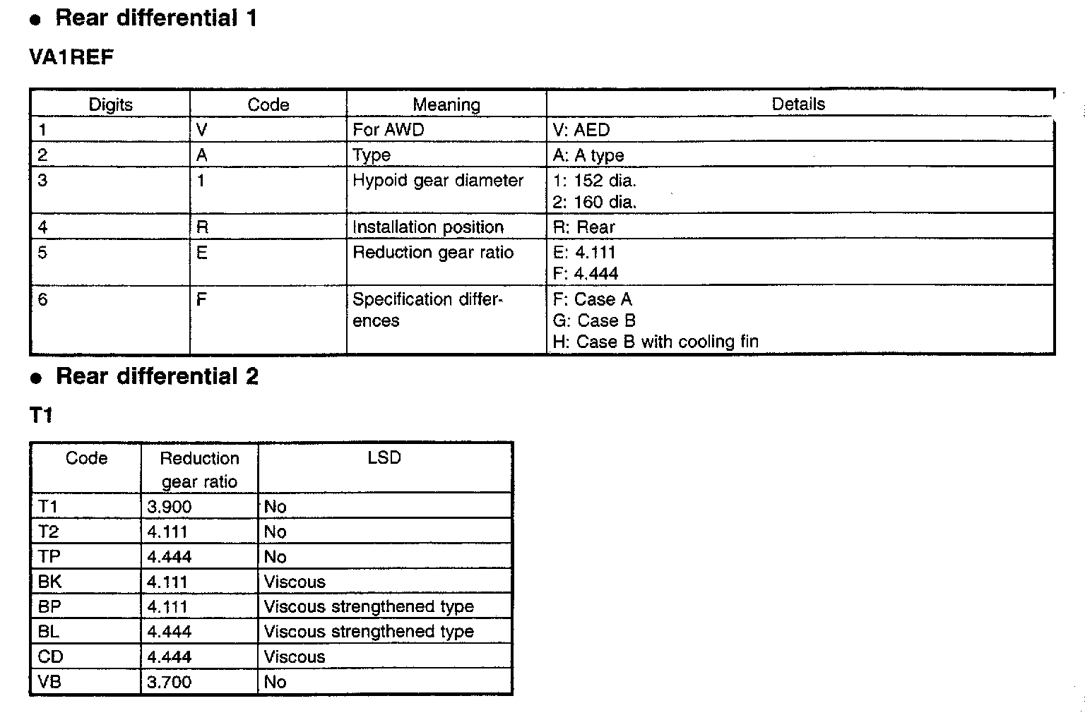 Rear Differential Identification Details & Ratios: