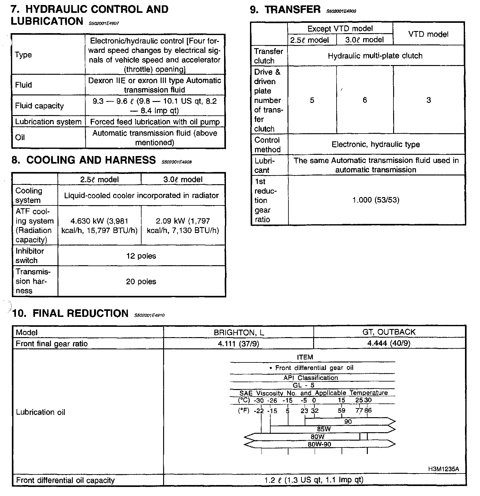 4-spd A/T, Transmission, Transfer Case & Final Reduction Data:
