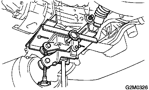 ^ On AT vehicle, make sure that the support plates of transmission jack don't touch the oil pan.