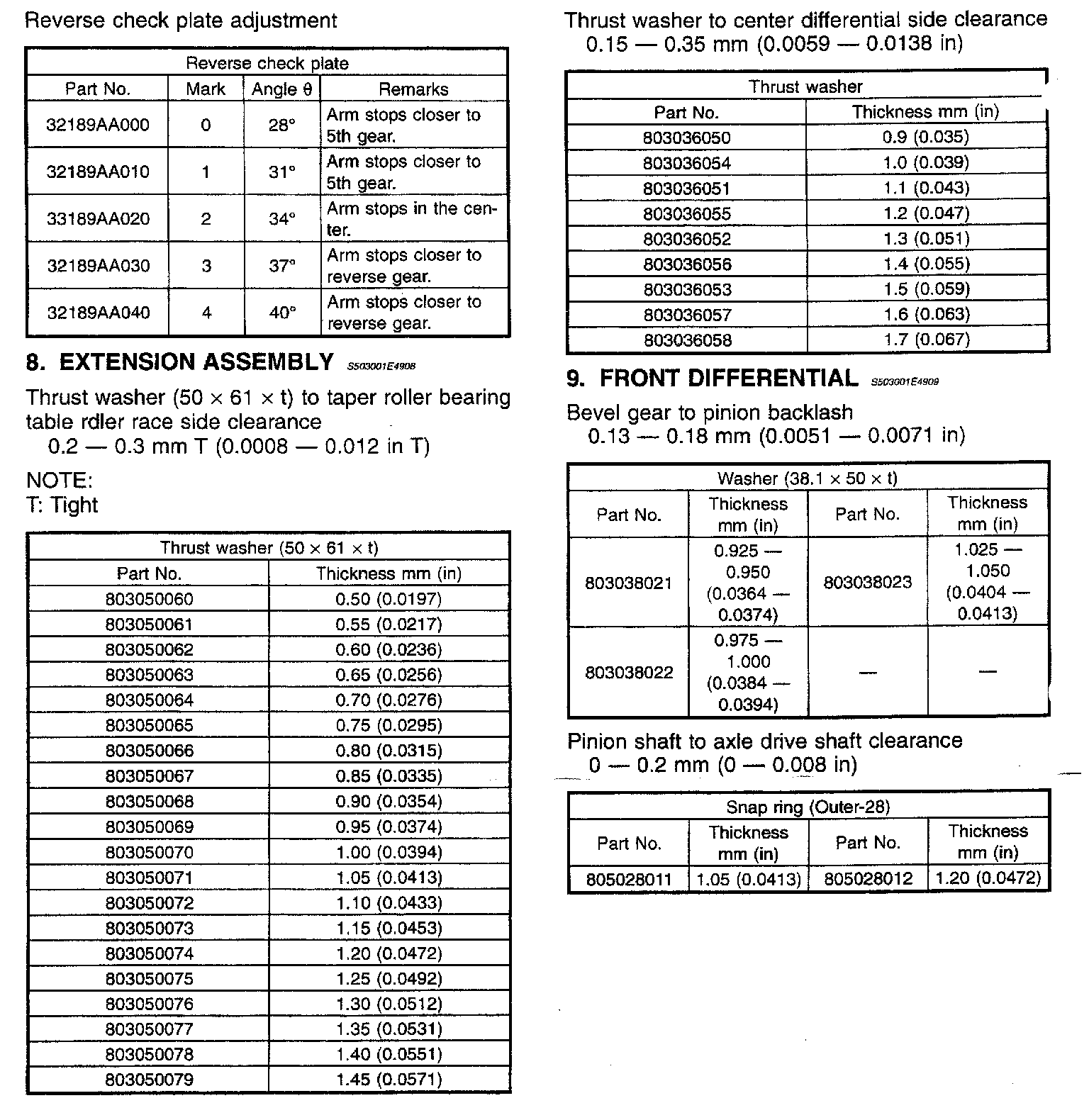 5-spd M/T, Transmission Service/Overhaul Data: