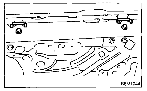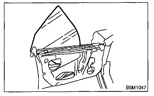 7. Operate the power window switch to move glass to the position shown in the figure, and then remove the two nuts from service holes.