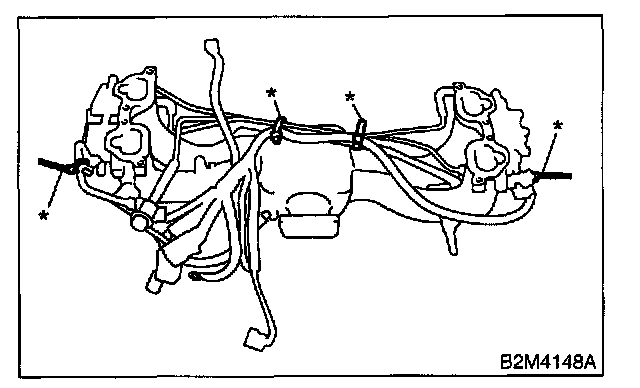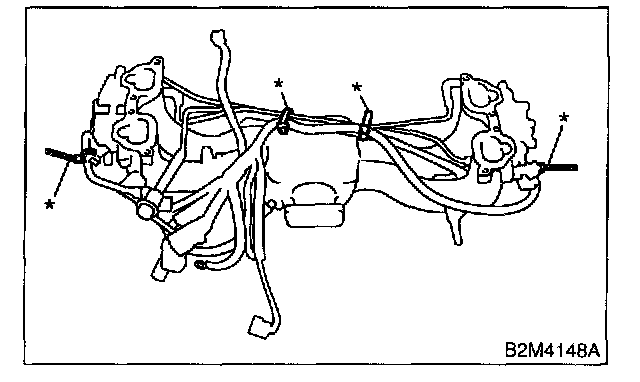 18. Remove harness bands (*) which hold engine harness onto intake manifold.