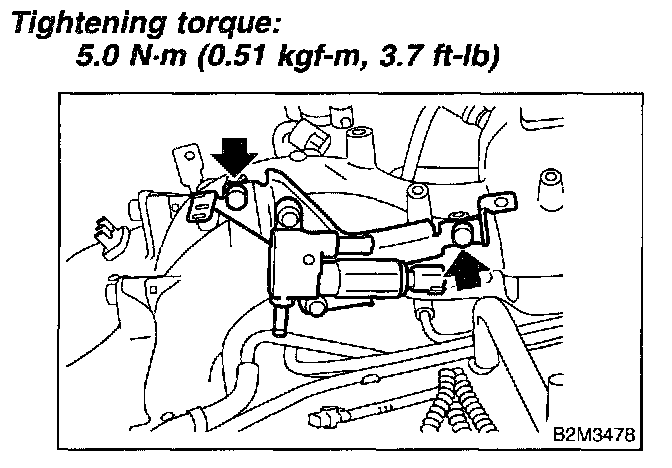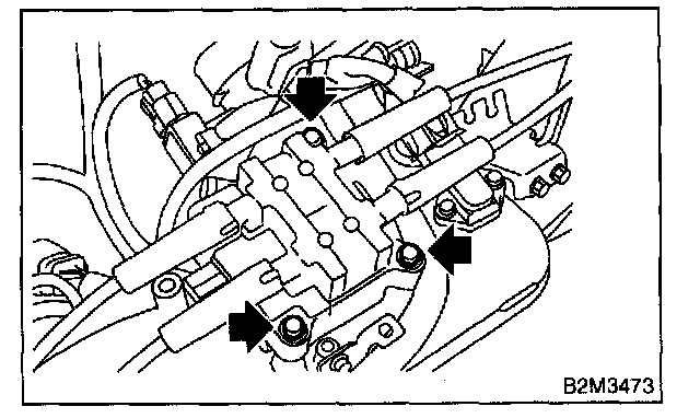 2. Tighten bolt which installs fuel pipes on intake manifold.