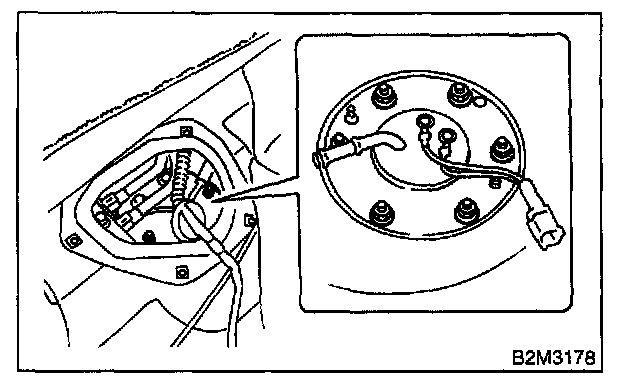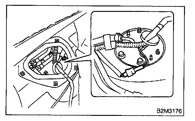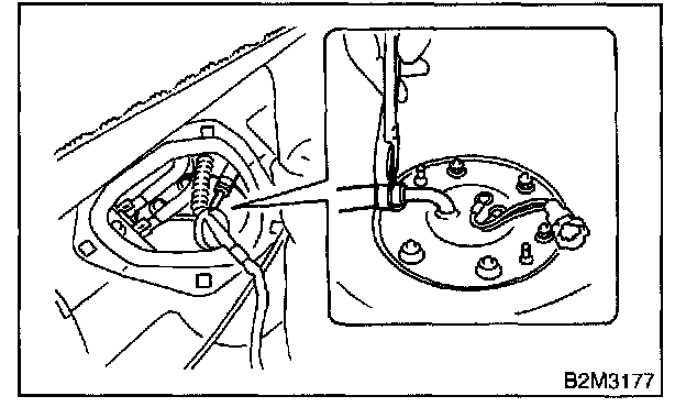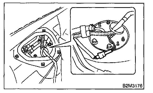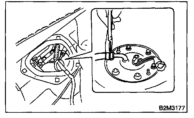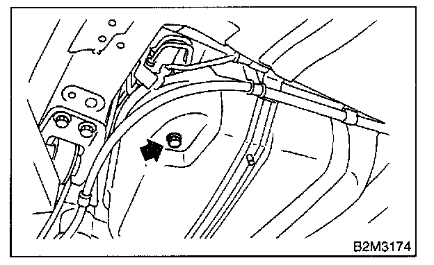 Set a container under the vehicle and remove drain plug from fuel tank.