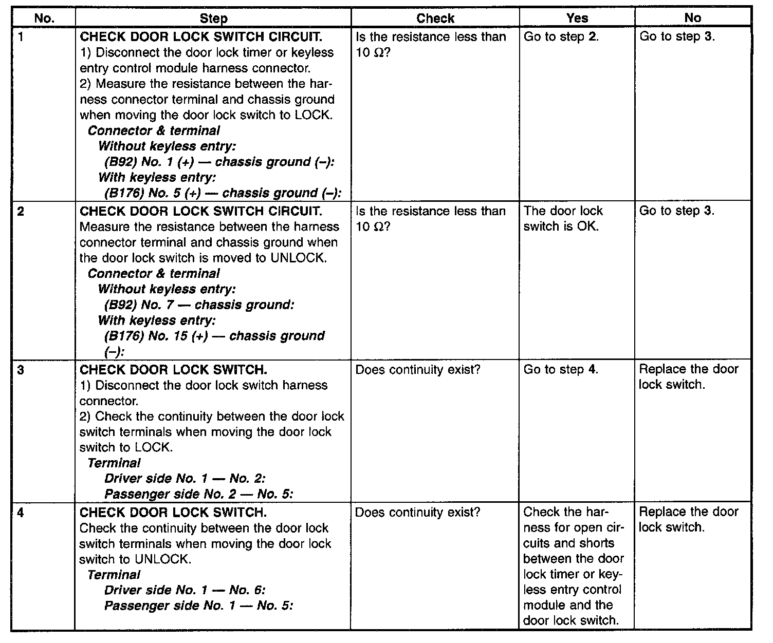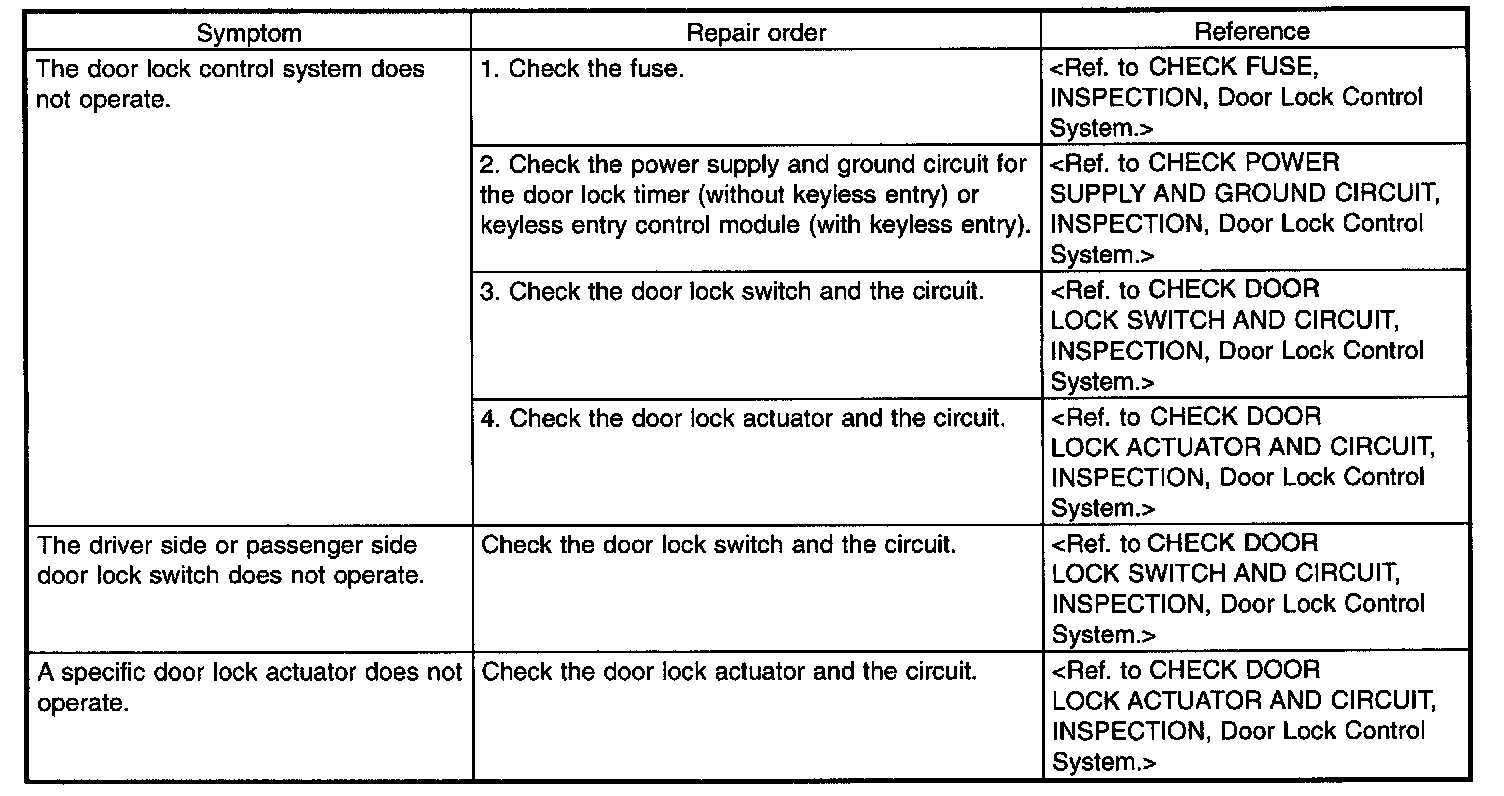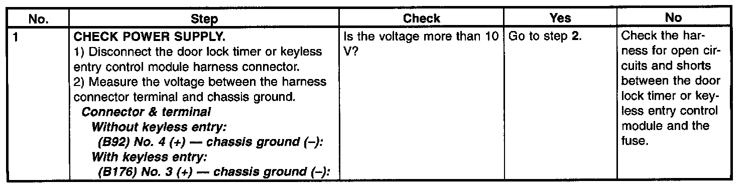 Check Door Lock Switch And Circuit: