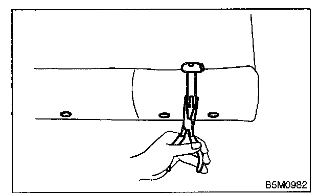 5. While picking up tip with pliers, remove headrest lock bushings.