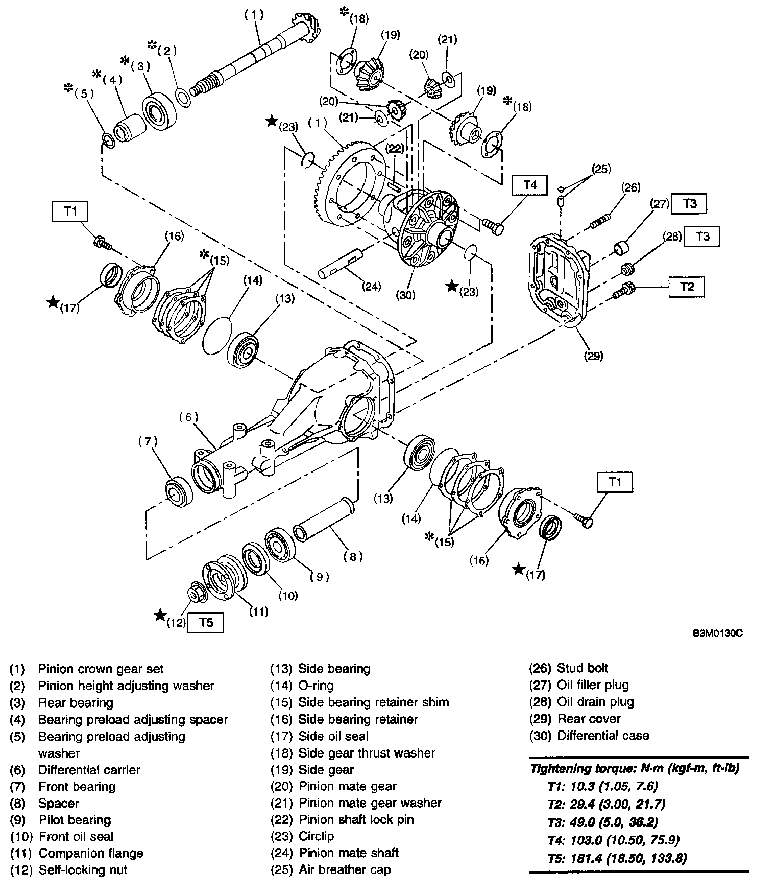 1. REAR DIFFERENTIAL FOR T-TYPE WITHOUT LSD