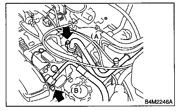 6. Disconnect low-pressure hose (A) and highpressure hose (B).