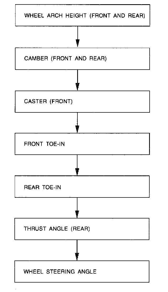 Check, adjust and/or measure wheel alignment in accordance with procedures indicated in figure: