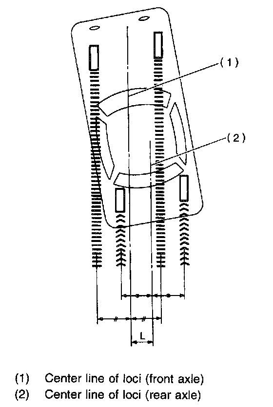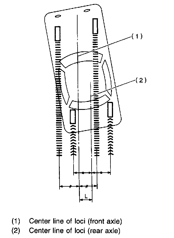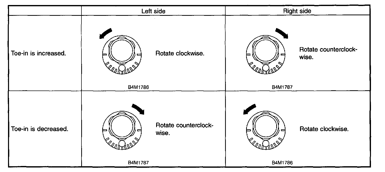 2. When one rear wheel is adjusted in a toe-in direction, adjust the other rear wheel equally in toe-out direction, in order to make thrust angle adjustment.