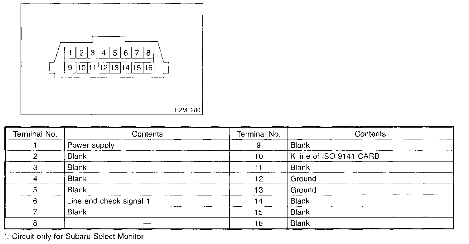 2. Terminal No.4 to No.6 of the data link connector is used for the Subaru Select Monitor signal.