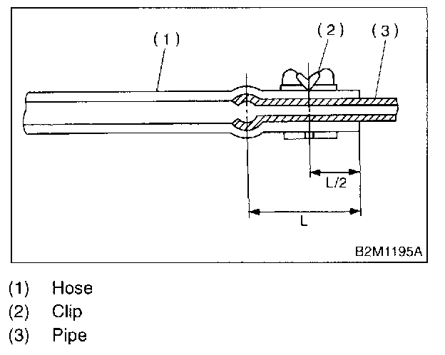 2. Connect fuel delivery hose to pipe with an overlap of 20 to 25 mm (0.79 to 0.98 in).