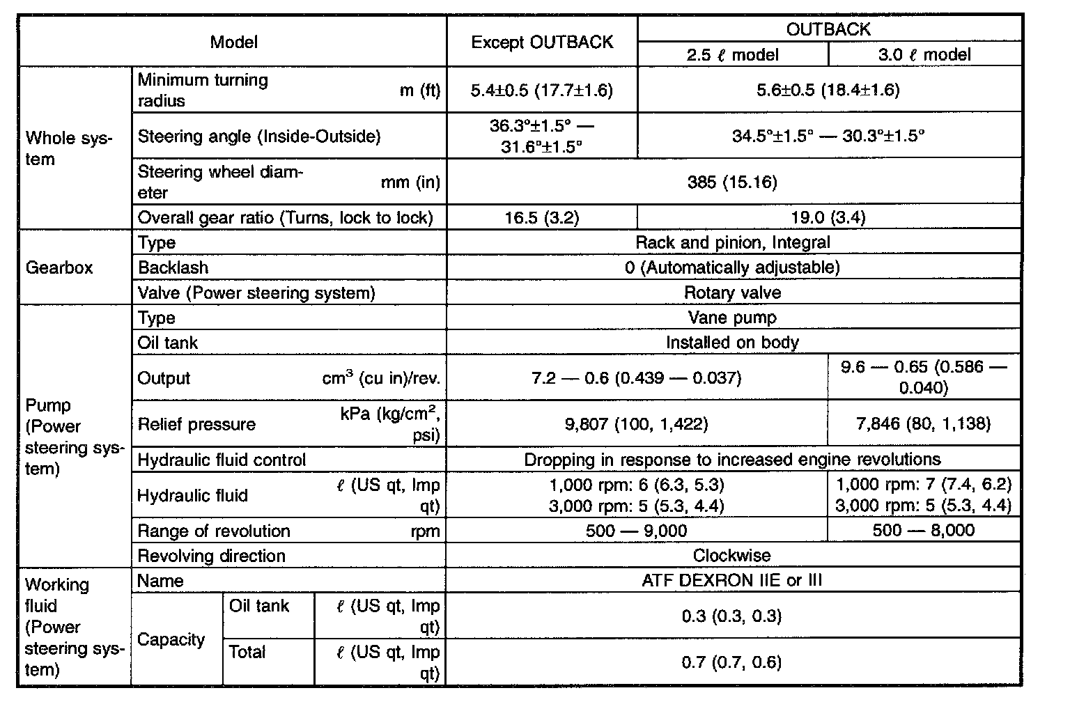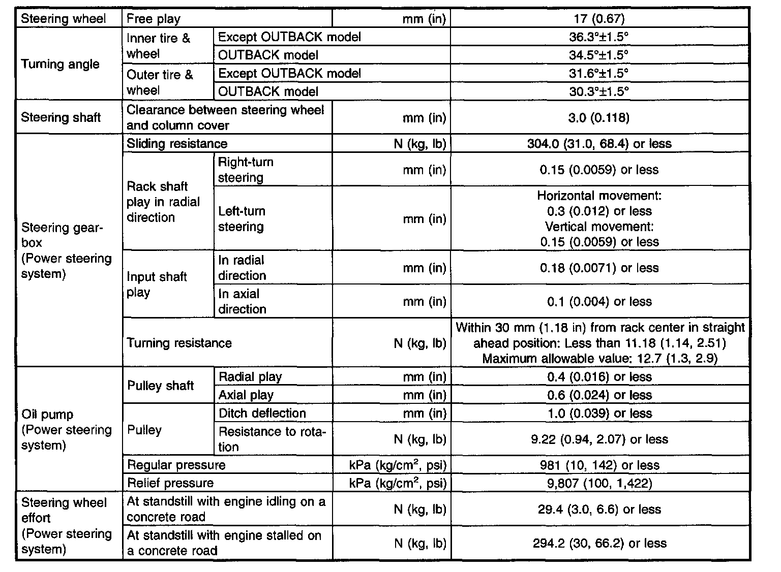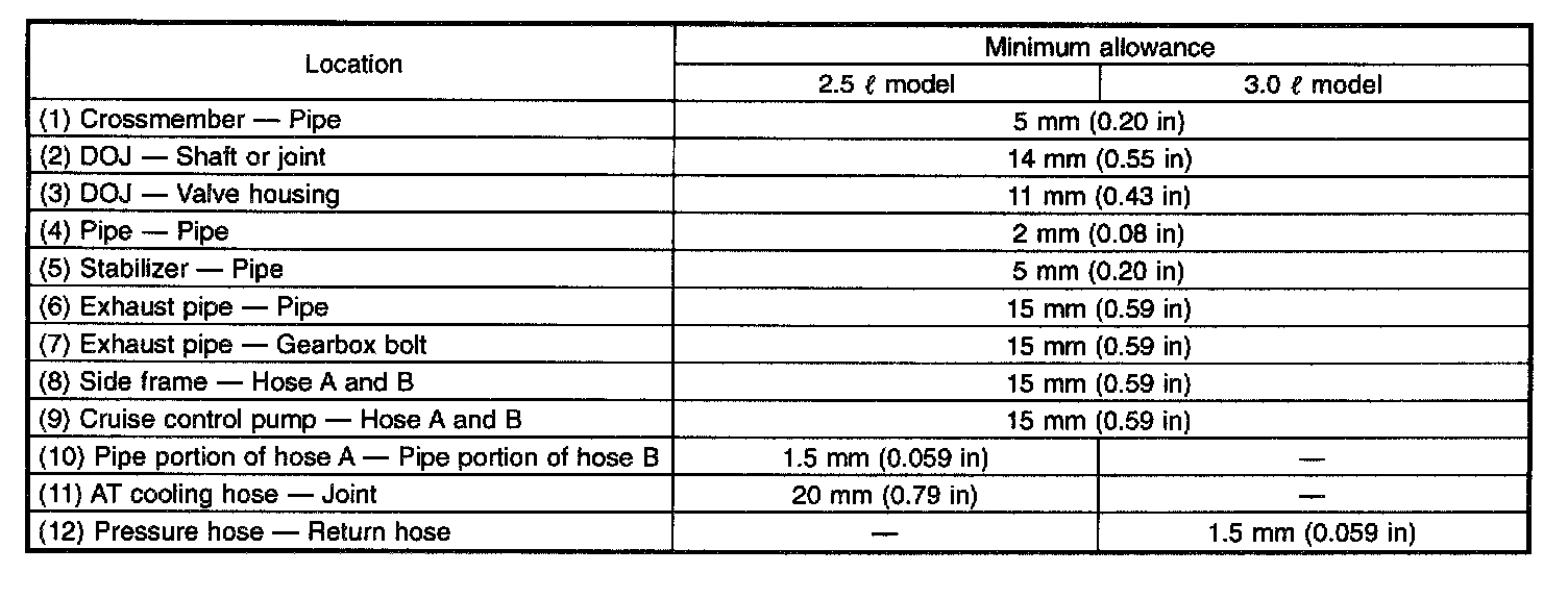 This table lists various clearances that must be correctly adjusted to ensure normal vehicle driving without interfering noise, or any other faults.