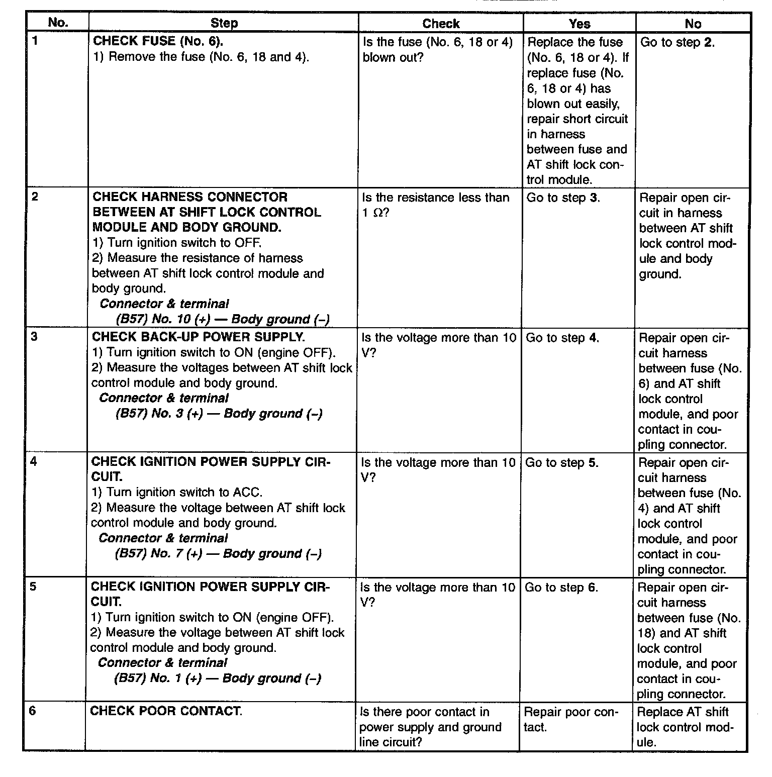 1. AT SHIFT LOCK CONTROL MODULE POWER SUPPLY AND GROUND LINE