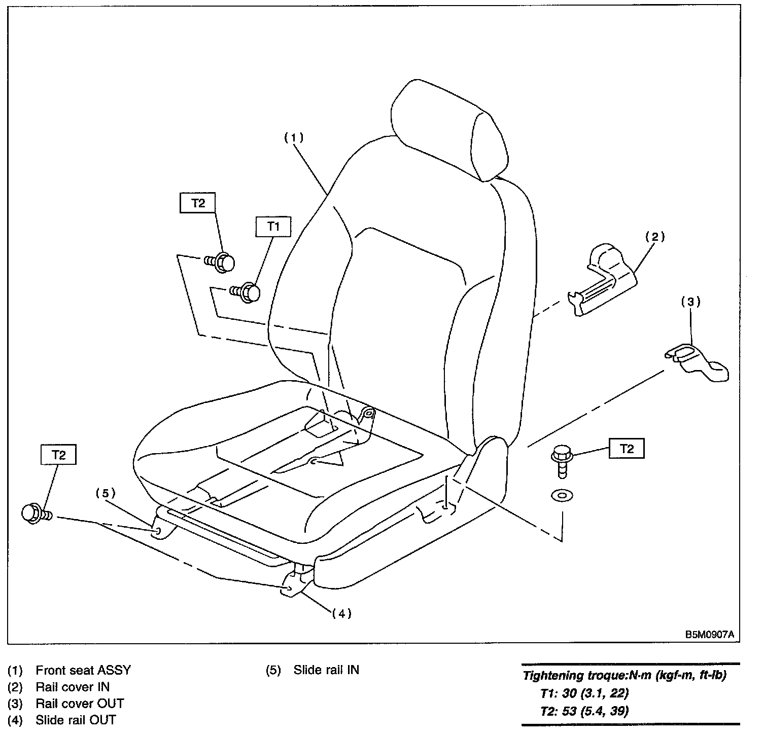 CAUTION: When removing seat form vehicle, take care not to damage body, seat, or trim.