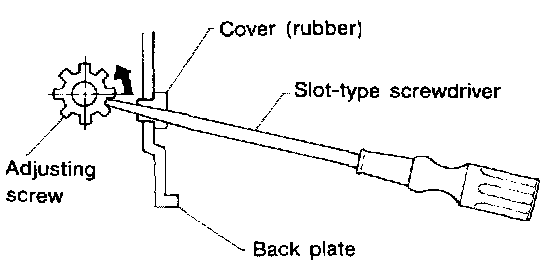2. Turn adjusting screw using a slot-type screw-driver until brake shoe is in close contact with disc rotor.