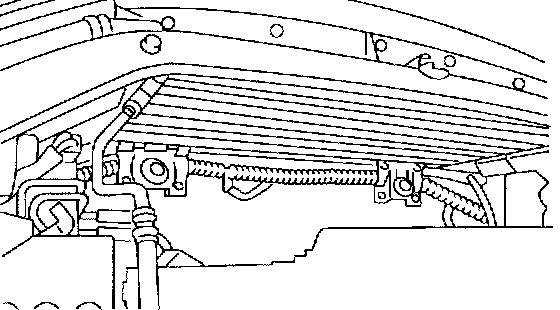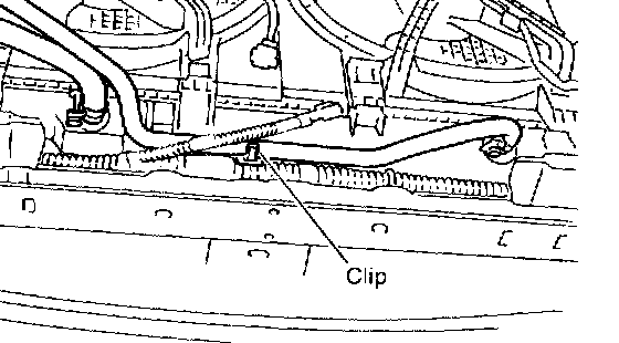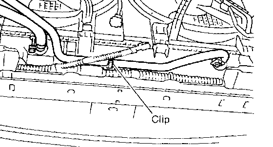 14. Detach power steering hose from the clip on the radiator.
