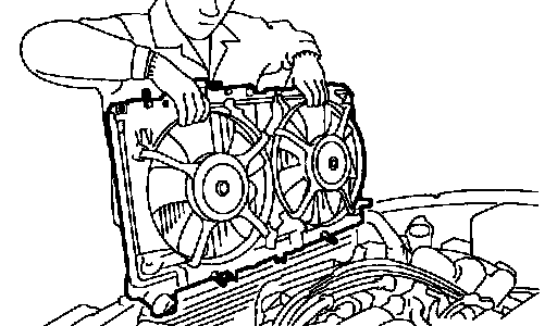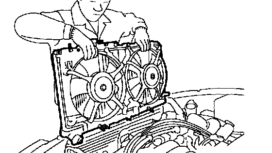 16. Lift radiator up and away from vehicle.