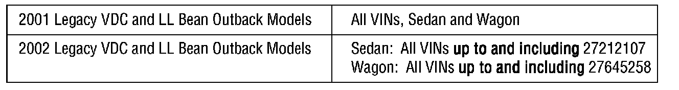 2001-2002MY H-6 Legacy Vehicles
