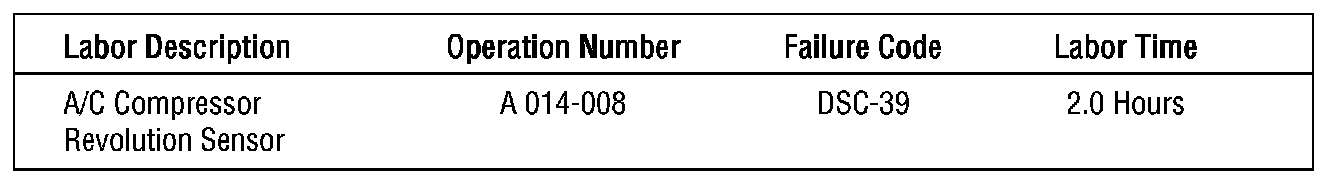 The purpose of this bulletin is to address a possible customer concern relating to insufficient cooling of the passenger compartment due to "short-cycling" of the air conditioner compressor. This condition occurs when the air conditioner compressor revolution sensor develops an open circuit. The modified revolution sensor part number is 73190AE000.