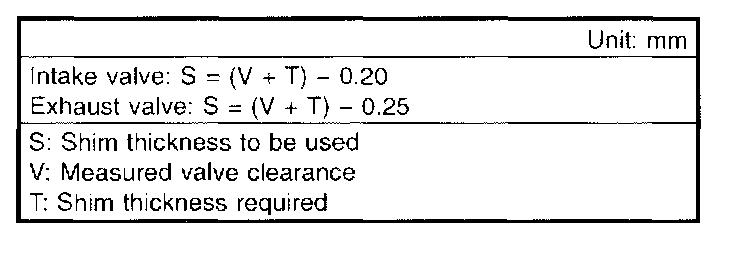 4. Select a shim of suitable thickness using measured valve clearance and shim thickness.