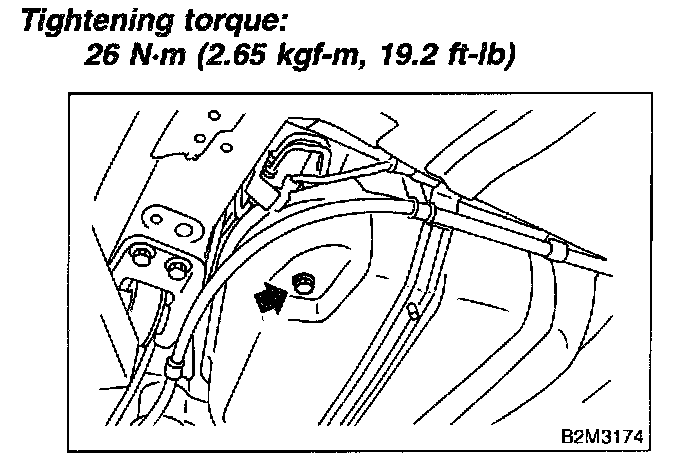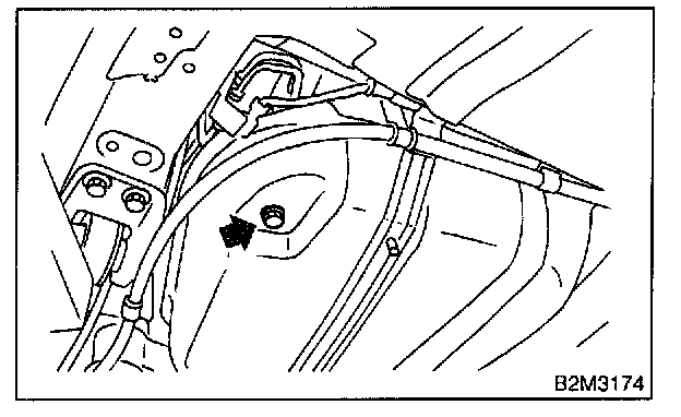 4. Drain fuel from fuel tank. Set a container under the vehicle and remove drain plug from fuel tank.