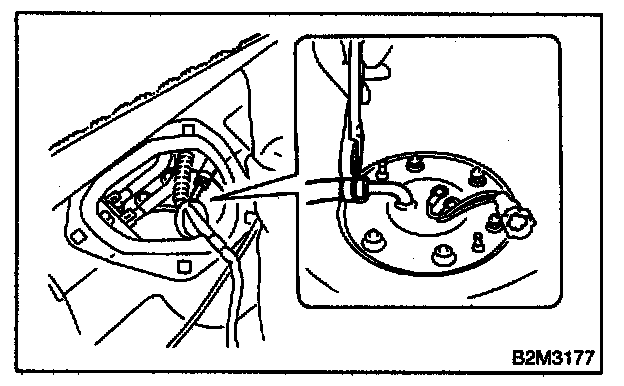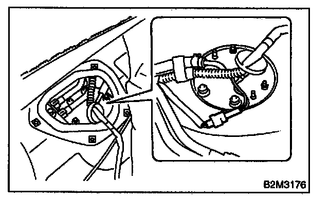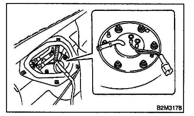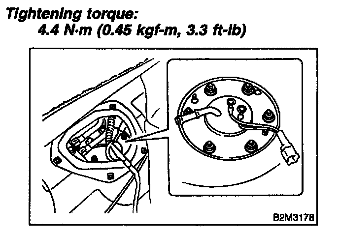 11. Remove bolts which install fuel sub level sensor on fuel tank.