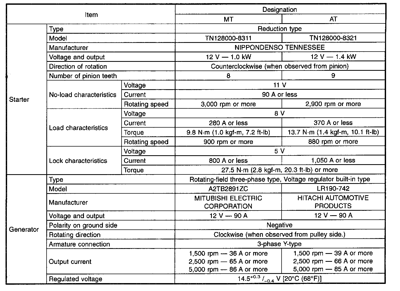 Electrical Specifications