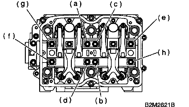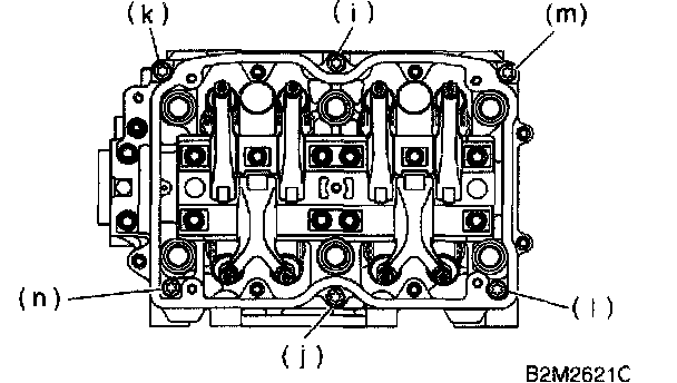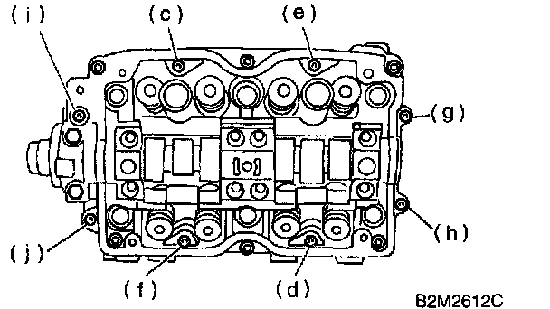 b. Equally loosen bolts (c) through (j) all the way in alphabetical sequence.