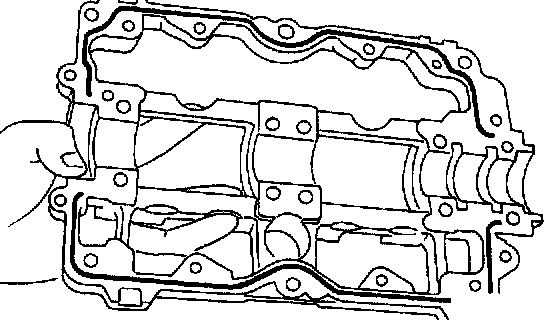 1) Apply a coat of engine oil to camshaft journals and install camshaft,