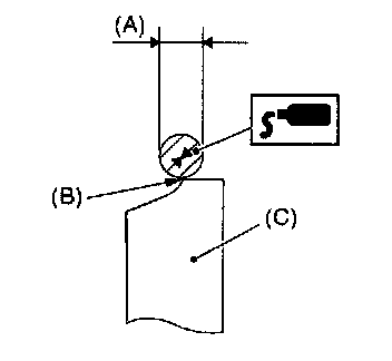 NOTE: Apply a coat of 3 mm (0.12 inch) dia. (A) liquid gasket along edge (B) of camshaft cap (C) mating surface.