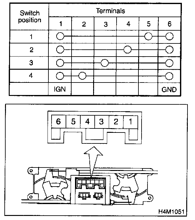 Check continuity between terminals at each switch position.