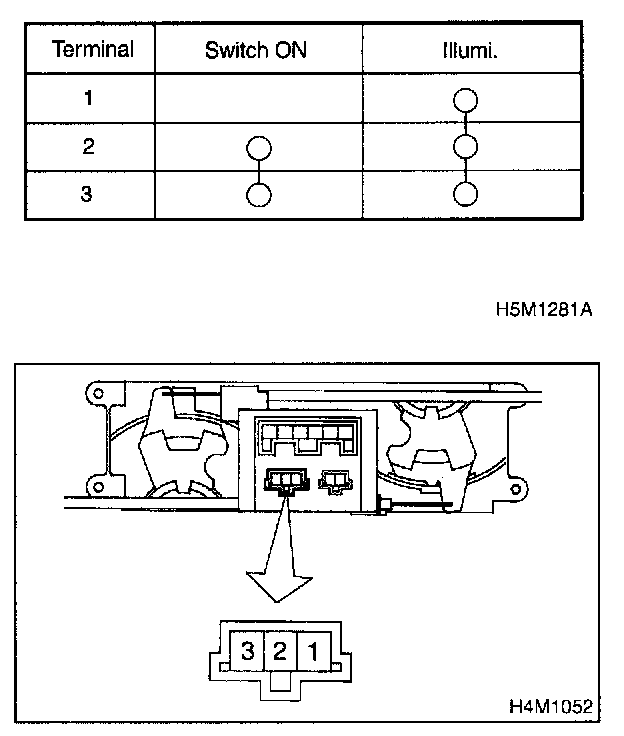 Check A/C switch continuity between each terminal.