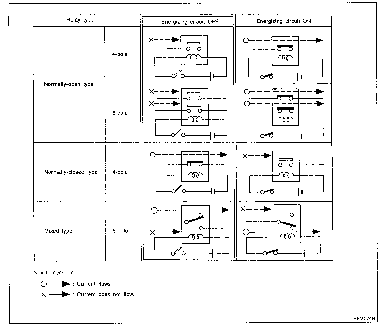 The wiring diagram shows the relay mode when the energizing circuit is OFF.