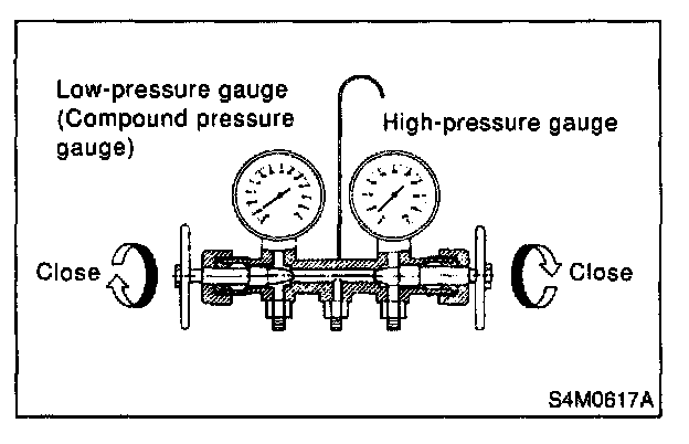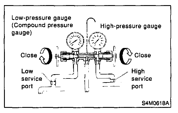 3. Close the valves on the low-/high-pressure sides of the manifold gauge set.