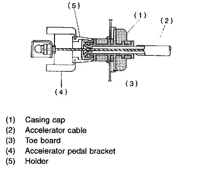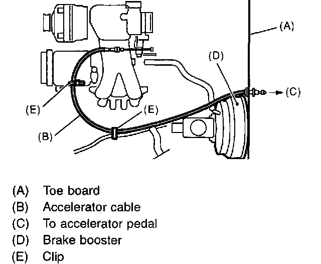 9) Disconnect accelerator cable from accelerator pedal lever.