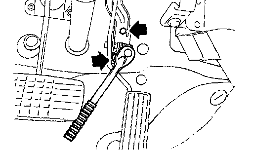 12) Remove accelerator pedal connecting bolt from accelerator pedal bracket.