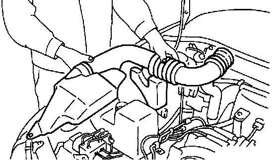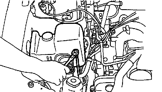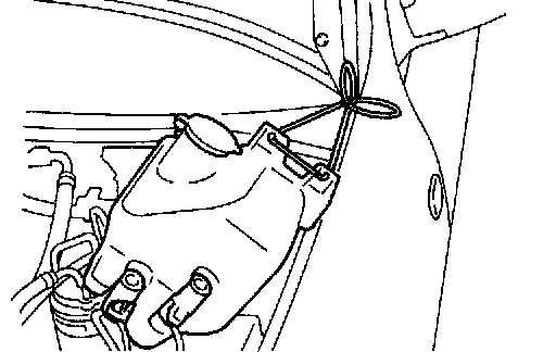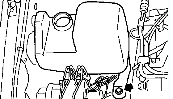 3. Remove the two bolts which hold washer tank, then secure the tank away from working area.