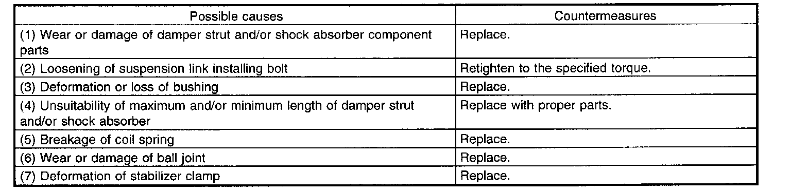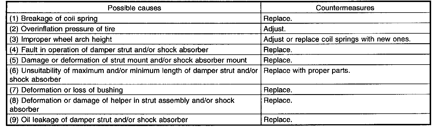 1. IMPROPER VEHICLE POSTURE OR IMPROPER WHEEL ARCH HEIGHT