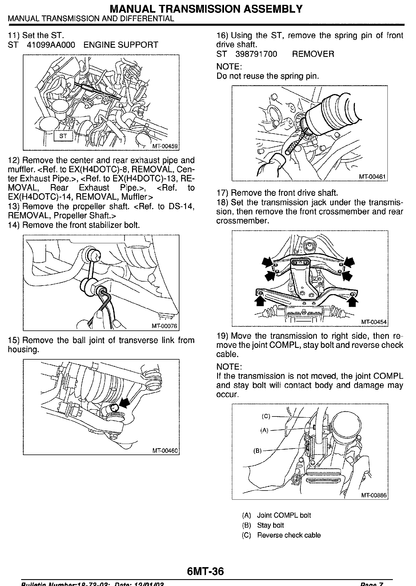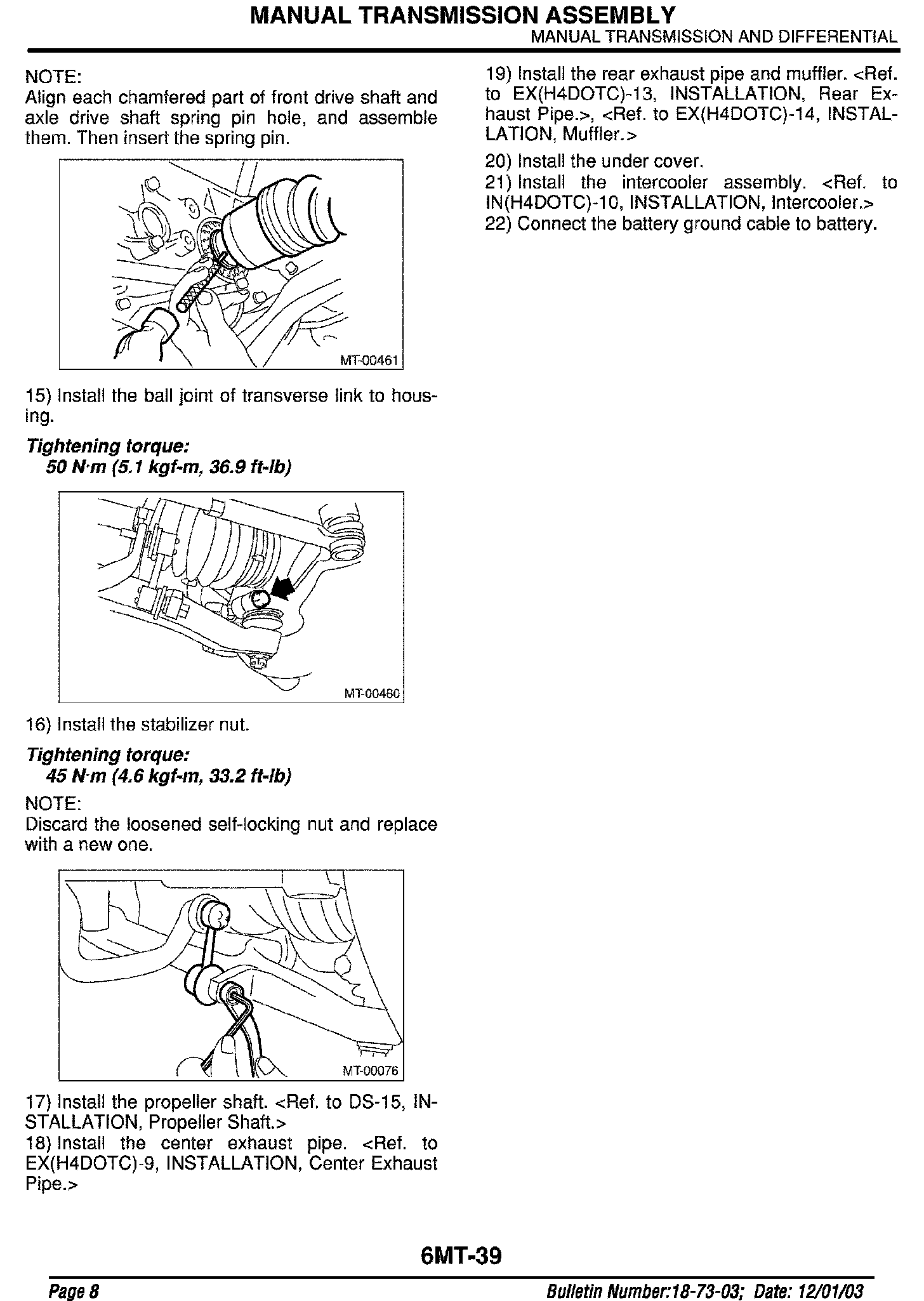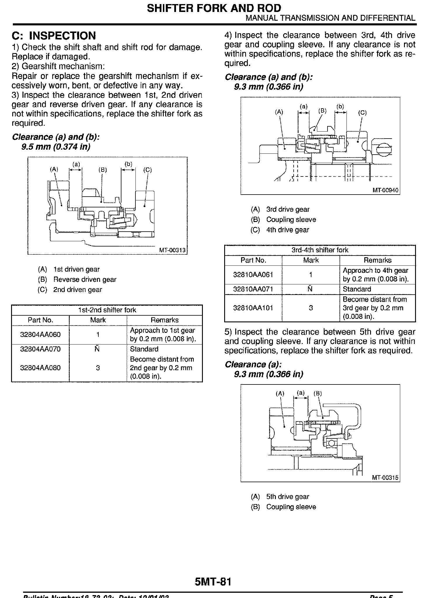 Engine, A/T, M/T - Service Manual Revisions