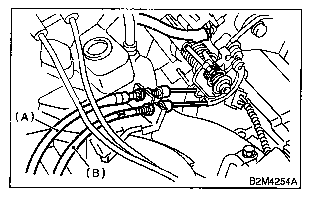 4. Disconnect cruise control cable (B). (With cruise control model)