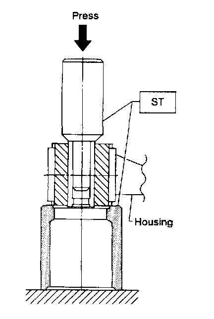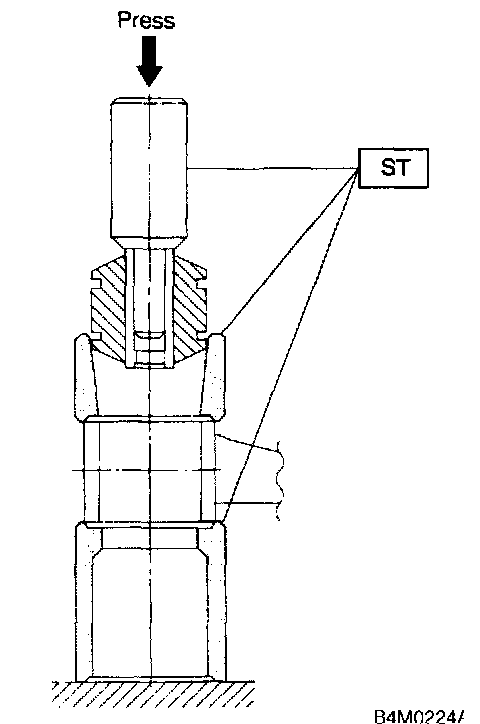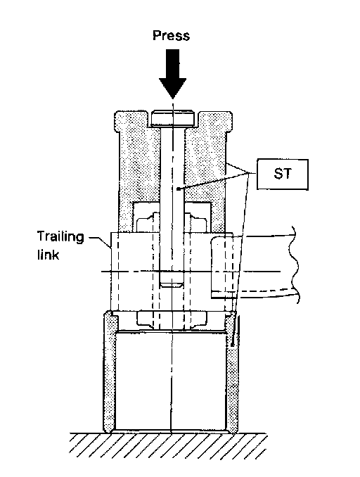 NOTE: If it is difficult to press bushing into trailing link, apply water-diluted TIRE LUBE to the inner surface of ST as a lubricant.