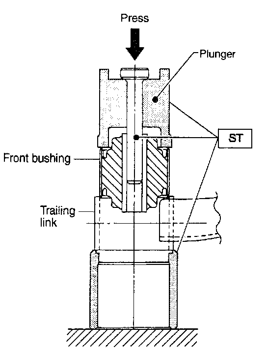 CAUTION: When installing bushing, turn ST plunger upside down and press it until plunger end surface contacts trailing link end surface.